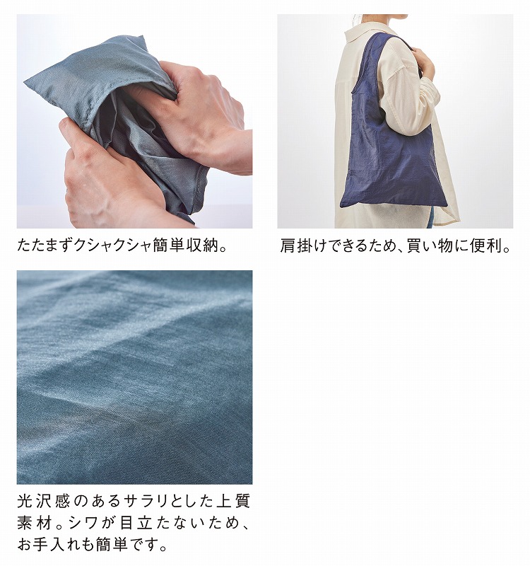 廃棄予定の衣類を再利用した、上質な風合いのエコバッグ。
