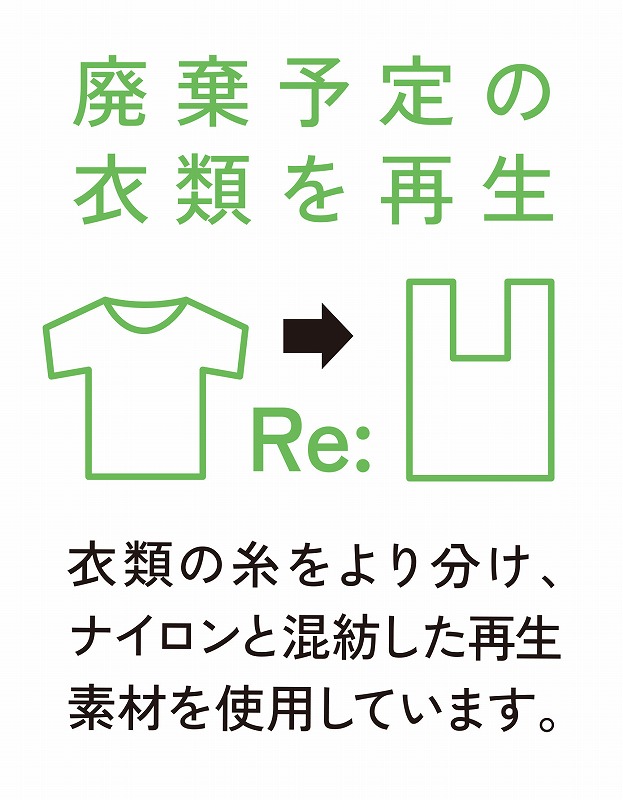 1.廃棄予定の衣類にナイロンを混紡したecoな生地を使用。