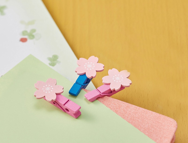 メモを挟んだり、グリーティングカードに添えたり、楽しいさくら木製ピンチの4コセットです。