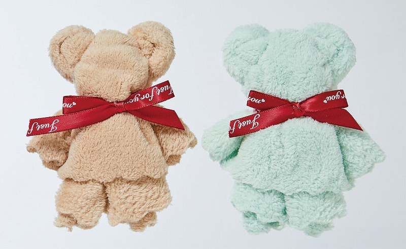 可愛いベアーの形になったふんわりタオルハンカチです。