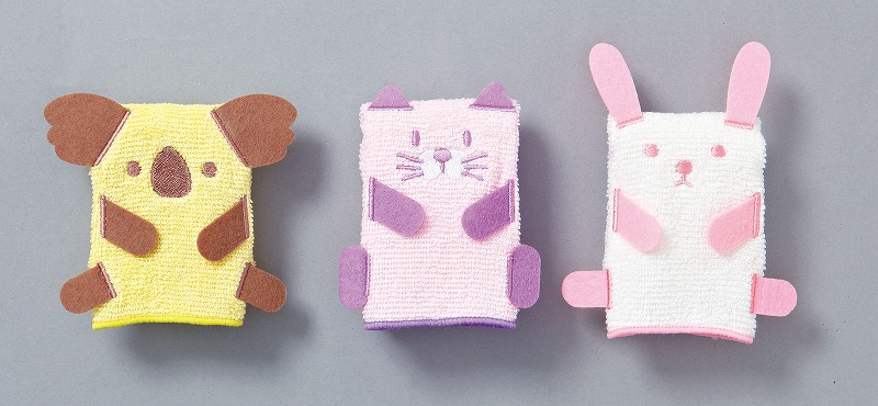 タオルハンカチをクルクル巻くとコアラ・ウサギ・ネコに変身!