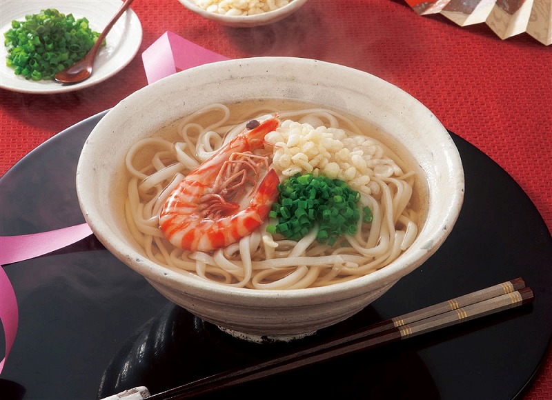 桜そば、そうめん、讃岐うどん、そばと四季を感じさせる4種類の麺がセットされています。賞味期間も長く保存にも適しています。4種類それぞれの味わいをお楽しみください。