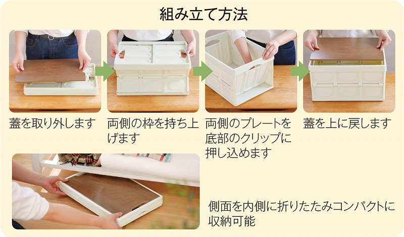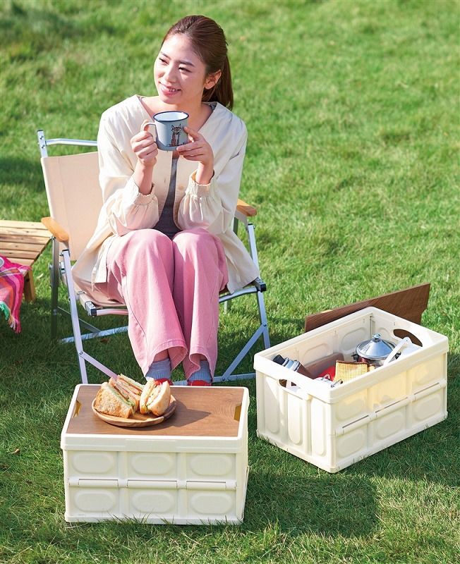 キャンプ道具やカー用品はもちろん、子どものおもちゃや衣類の収納にも。使用しない時はコンパクトに折りたためます。
