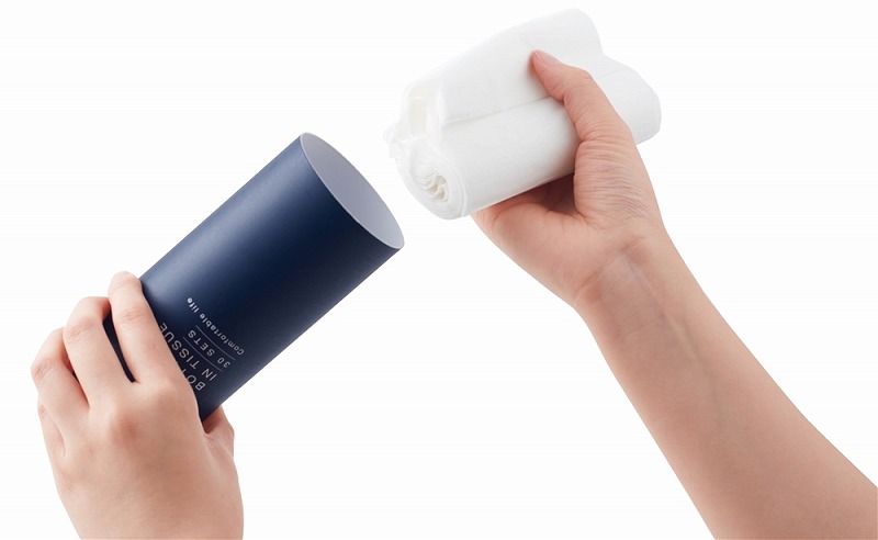 市販のティッシュを半分に切って詰め替えが可能なサイズ。コンパクトでデスクや車内で邪魔にならないサイズです。