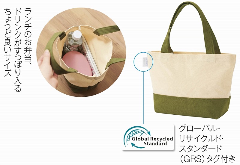 SDGsの重要課題である『海の豊かさを守ろう』につながる、プラスチック削減や3R+Renewableに該当する素材を使用。 GRS・・・グローバル・リサイクルド・スタンダードは国際的で自発的な完全製品基準であり、リサイクル材の第3者認証、流通管理、社会及び環境的、且つ化学的影響が最小化される事を保証する要件を定義しています。 製品としても携帯しておけばレジ袋削減の機会にもつながります。