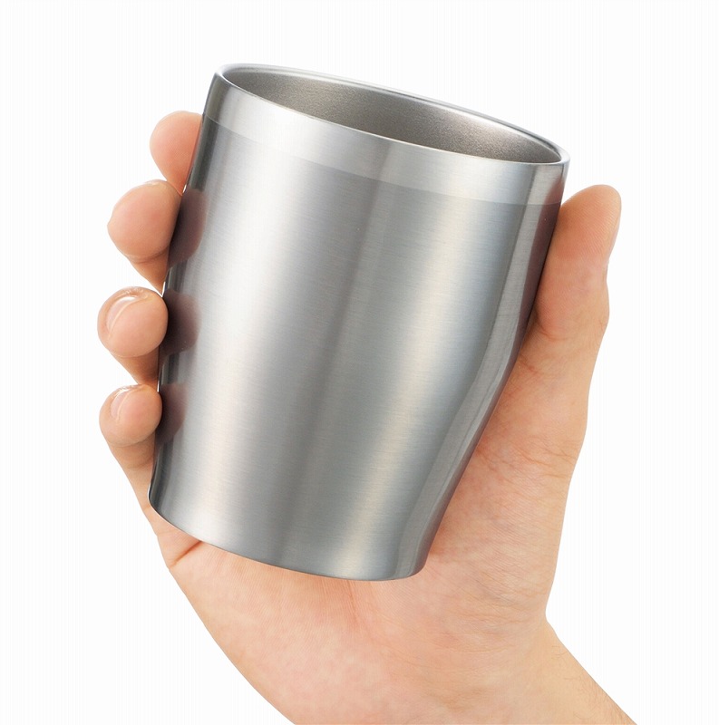 シンプルイズベスト♪ 好き嫌いの少ないシンプルなシルバーで、350mlの容量もあり色ーなシーンや飲み物にも対応できる万能形状。 化粧箱も名入れの邪魔をしないシンプルスタイルです。