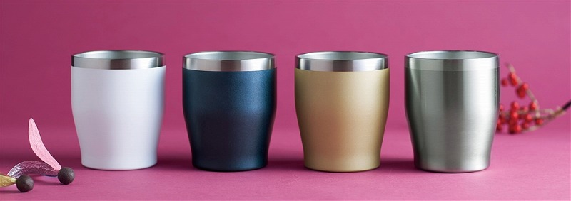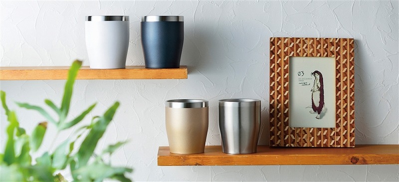 あらゆるシーンにしっくりマッチします。また、結露しないのでデスクまわりでも安心。シンプルな化粧箱なので名入れにも。