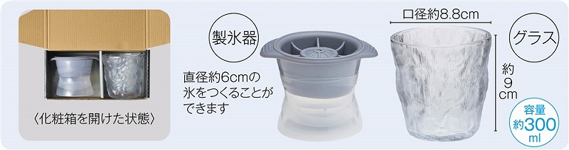 グラス/口径約8.8cm 高さ約9cm 丸氷製氷器/約11×8.5×8cm