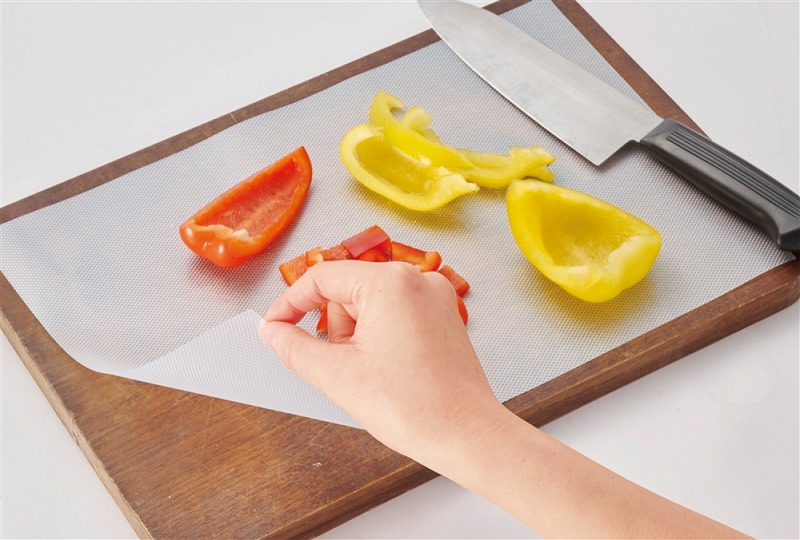 スライドで簡単カット!よごれを防ぐまな板シート