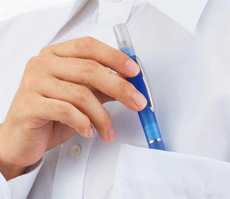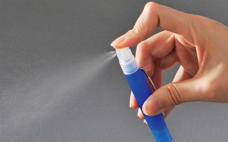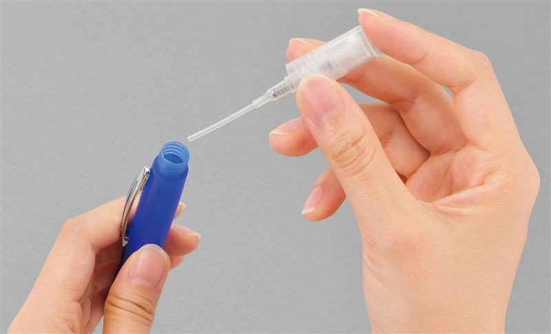 オフィスや学校で携行しやすいペン型スプレー。詰め替えが可能です。※納品時には消毒用アルコールなどの液体は充填されておりません。
