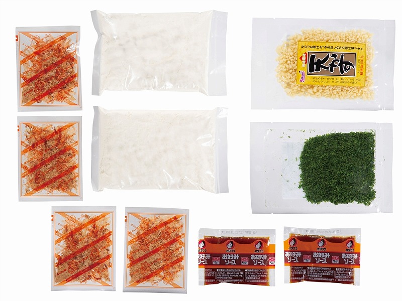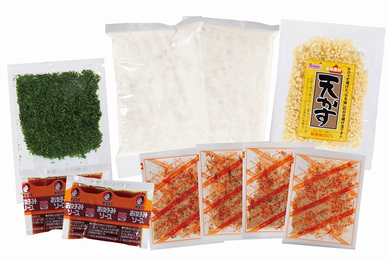 [セット内容] たこ焼きミックス粉200g×2 かつお節2g×4 天かす40g×1 アオサのり5g×1 オタフクソース50g×2