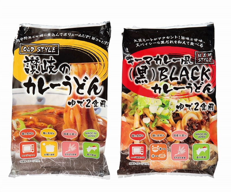 出汁がきいた讃岐のカレーうどんと大豆ミート使用のキーマ風カレーうどん!パッケージもずっしり大満足のボリューム感です!