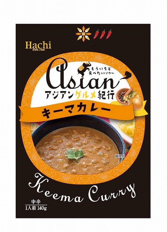 にんにく、しょうが、ガラムマサラを効かせてスパイシーに仕上げた一品です。1845年に創業の日本で初めてカレー粉を国産化したハチ食品が作ったこだわりのレトルトカレー。