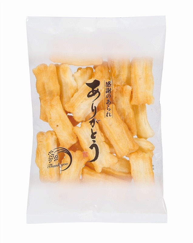 原料に国産もち米を100%使用した、こんがりきつね色に焼き上げたのち塩味に仕上げた米菓です。本格米菓でありながらサクッとした食感で、ご年配の方でも安心してお召し上がりいただけます。