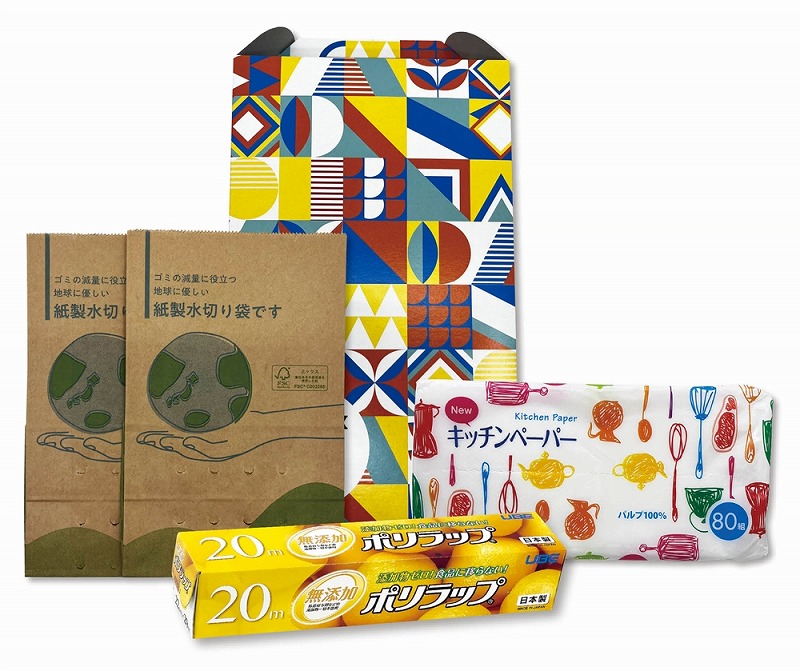 [セット内容] ・ソフトパックキッチンペーパー80組×1 ・ポリラップ(22cm×20m)×1 ・地球に優しい水切り紙袋×2
