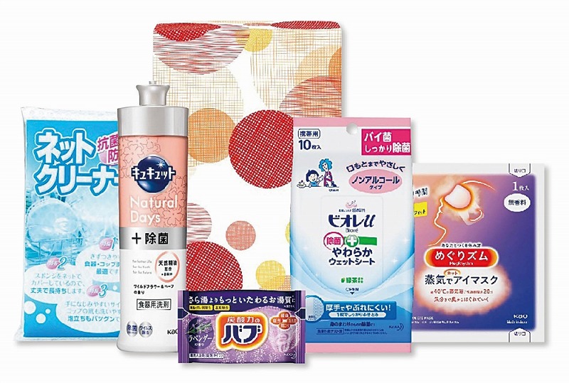 [セット内容] ・花王 キュキュット240ml(NaturalDays+除菌ワイルドフラワー&ハーブ)×1 ・花王 めぐりズム蒸気でホットアイマスク(無香料)×1 ・花王 バブ(ラベンダーの香り)×1 ・花王 ビオレu除菌やわらかウェットシート10枚(ノンアルコール)×1 ・ネットクリーナー×1