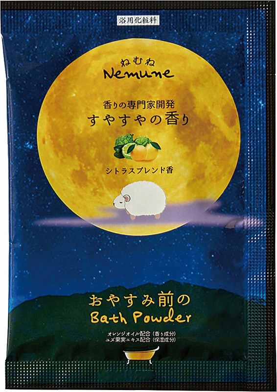 香りの専門家が開発した、おやすみ前の入浴料として、リラックス効果の高い香りが特徴の入浴料です。