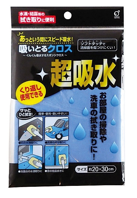 机や洗面台の水滴取り、窓の結露や洗車時の拭き取り等に便利です。 絞れば元の吸水力が戻り何度も繰り返し使用できます。