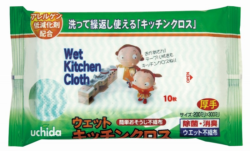 クロス編み加工で厚手で丈夫なキッチンクロスです。アレルゲン低減化剤配合を配合。