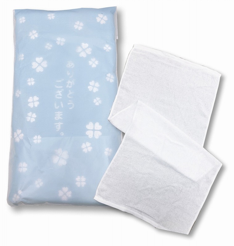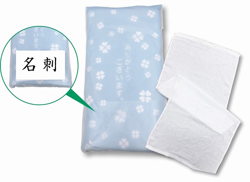 「ありがとうございます」の文言にポケット付きの袋入りです。名刺やカードなどを添えてお使い頂けるスタンダードなタオルです。