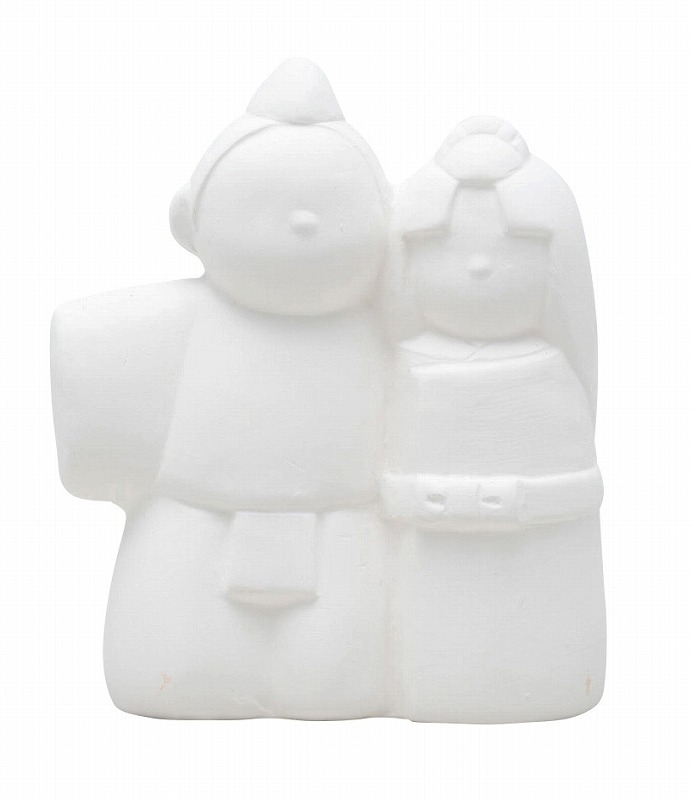 陶器製の貯金箱です。吸水性のある白い陶器なので、絵付け体験が出来ます。底の部分にお金を取り出す穴が開いています。底に貼るシールが1枚付き。 ※着色用の画材は付属しておりません。