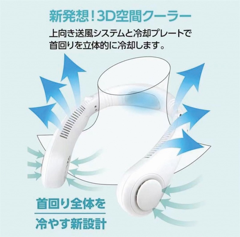 ハンズフリーで涼しい、首掛け式羽無し扇風機です。 20℃/26℃の2段階の冷却プレートがあり、首元もひんやり♪ 羽根がないので髪の毛を巻き込みにくい設計です。 ジョギングや室内など、さまざまなシーンで活用できます!
