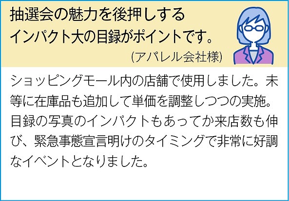 抽選くじ・くじ箱などの付属品もセットになっているので、納品後すぐにイベントが開催できます。