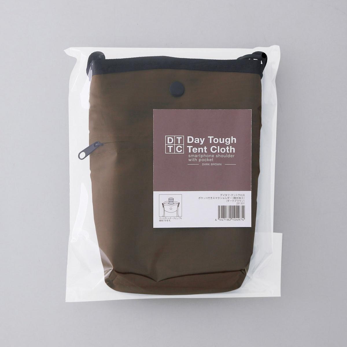 デイタフ・テントクロスポケット付きスマホショルダー(撥水加工)(ダークブラウン)