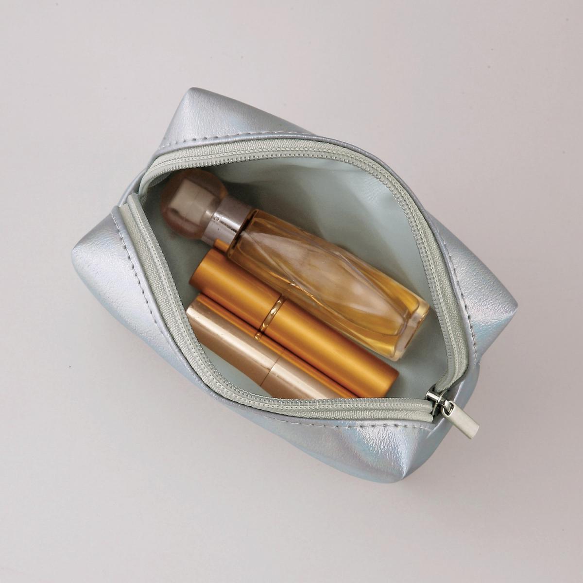 大きく開くので出し入れも簡単、容量の多さが嬉しいボックス型。全面オーロラ調なので無地でも華やか。