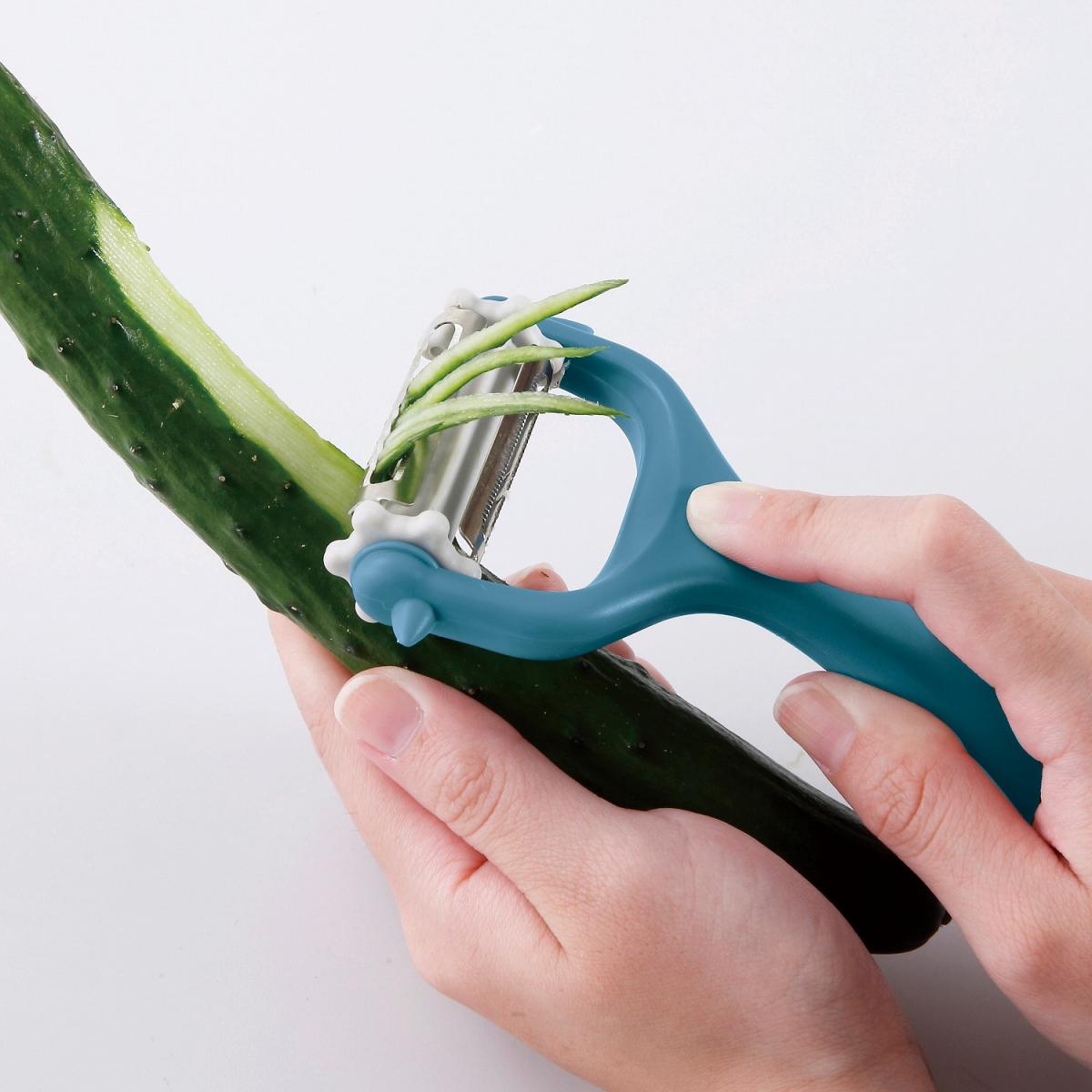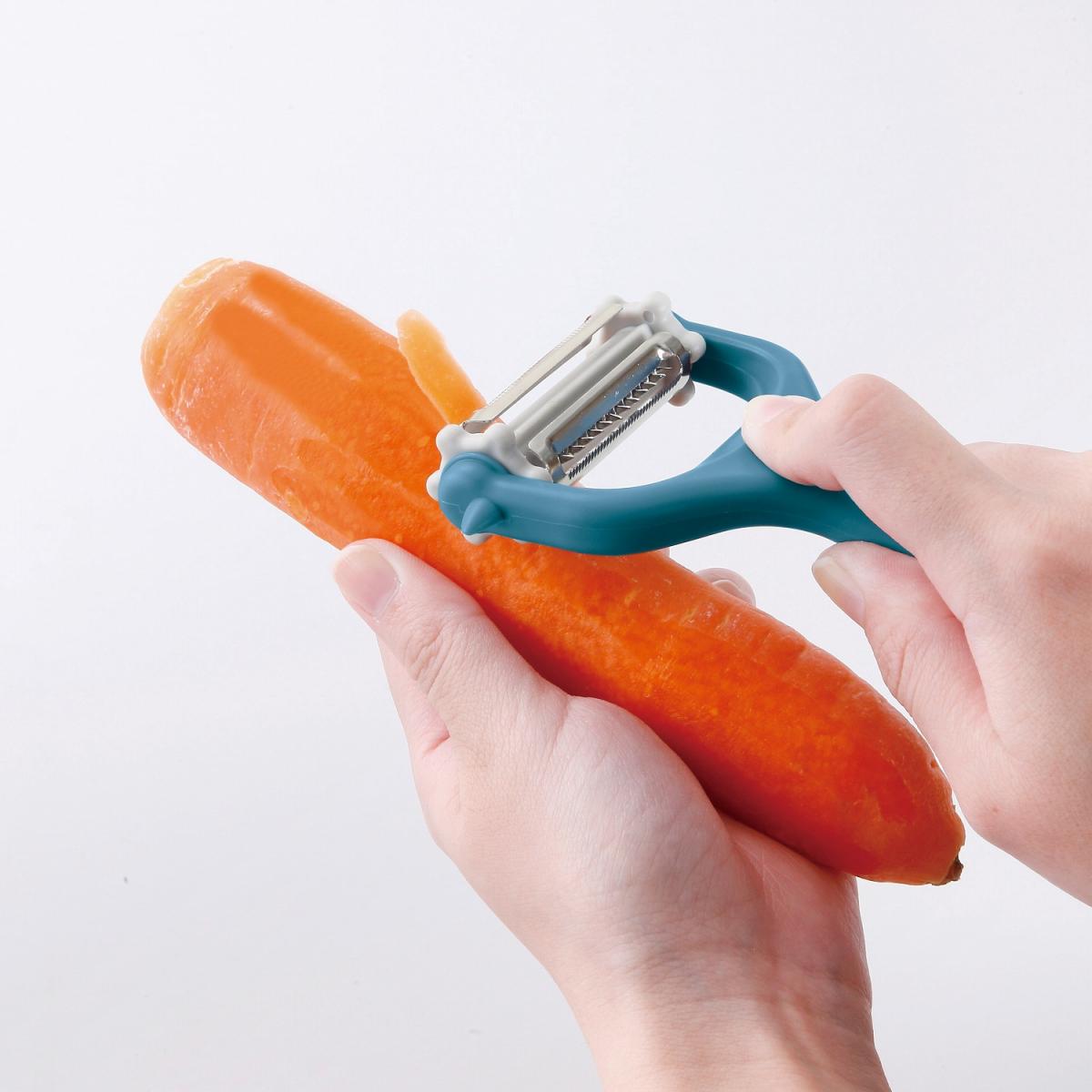 これ1つに刃が3枚。持ち替えせずに5種類の下ごしらえができる優れものです。