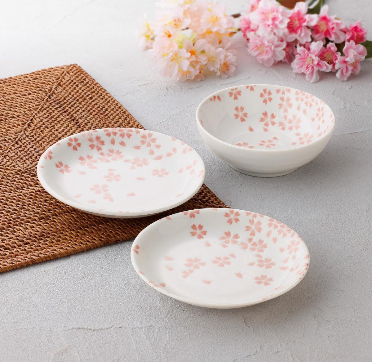 食卓にも華やかさを感じる演出を…旬の食材を使った料理を桜柄の食器へ。