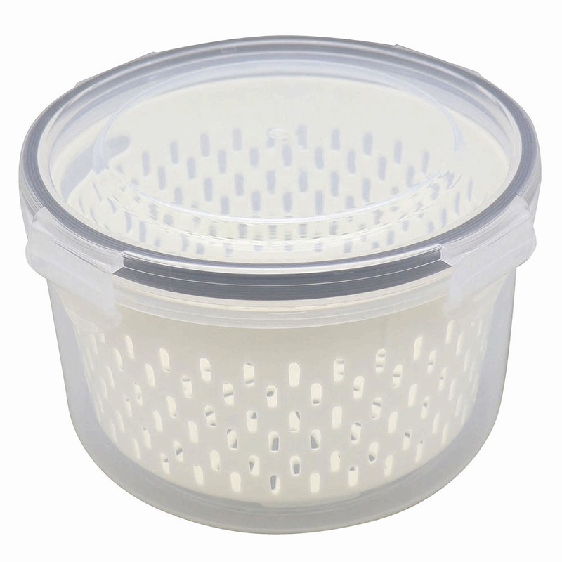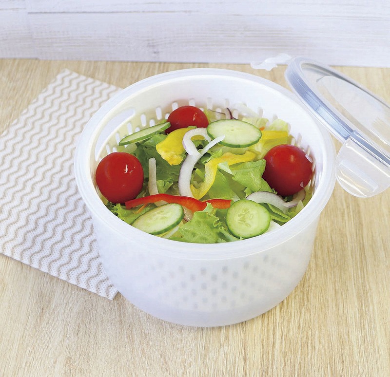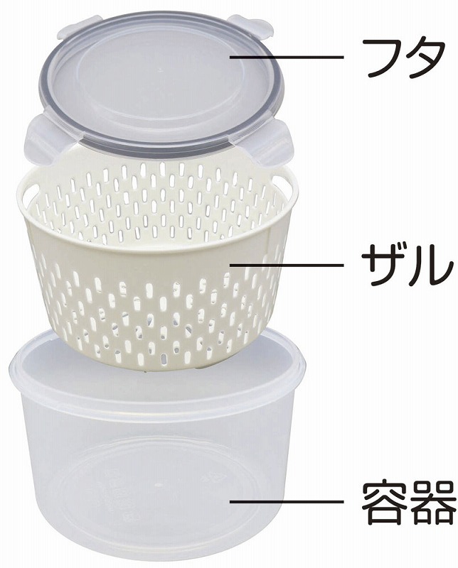 野菜をカットし、水切り後そのまま容器に保存が可能!ザルと容器に分かれているので使い方が色ー!野菜もみずみずしく保存できる!