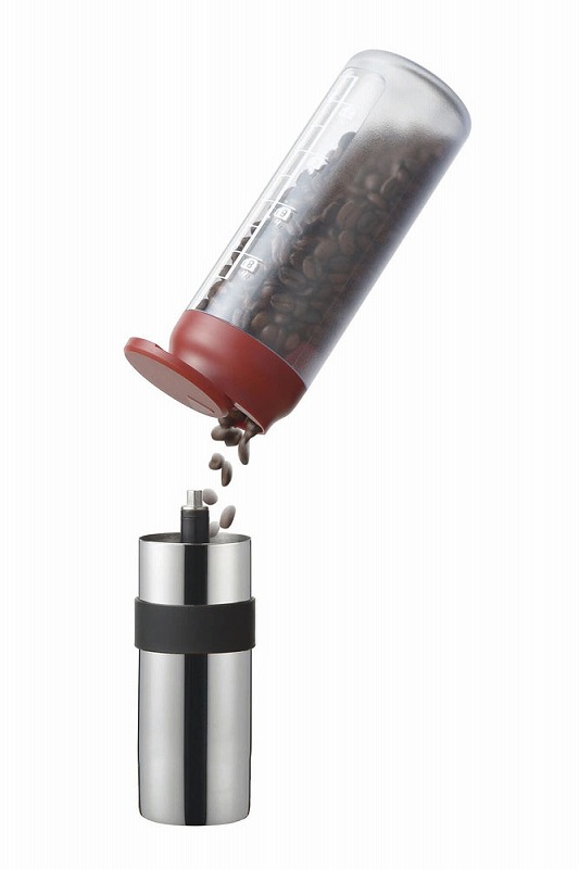 コーヒーの持ち運びに便利なキャニスター!約9杯分のコーヒー豆を持ち運べます。2振りすると1配分のコーヒー豆が出ますので、計量いらず!