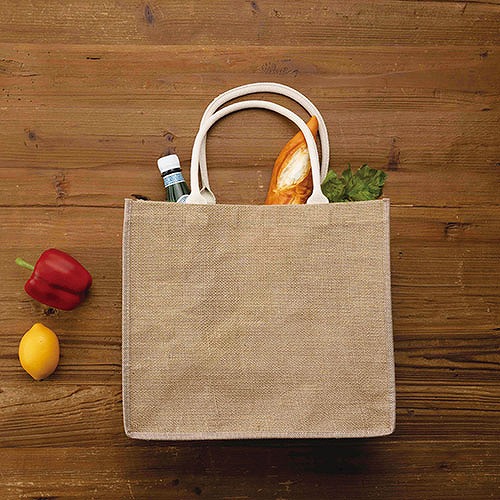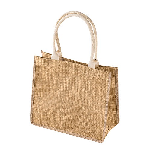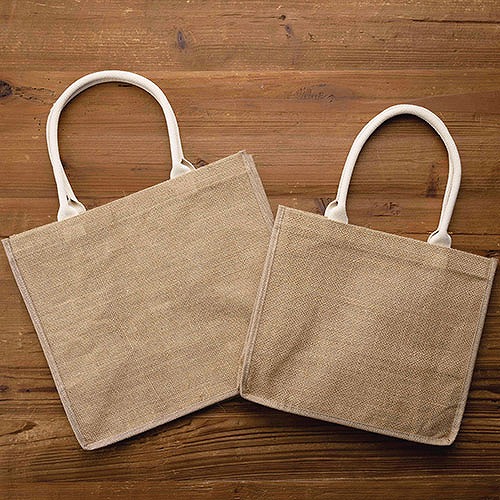 ジュートとは、黄麻という麻の一種で、通気性や吸収性に優れています。植物から作られた繊維で燃やしても有害物質を発生せず、土中に埋めてもバクテリアによって分解され土に還るため、環境にも優しいSDGsに配慮した素材です。普段使いにも、エコバッグ、通勤通学用にも万能に使えますので、屋外イベントや購入特典ノベルティとしても大活躍。