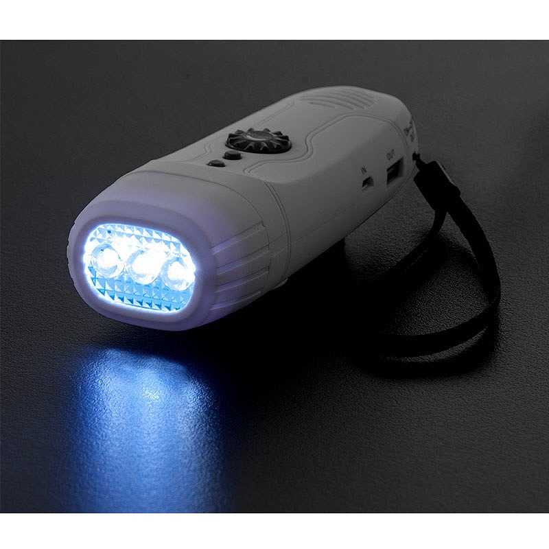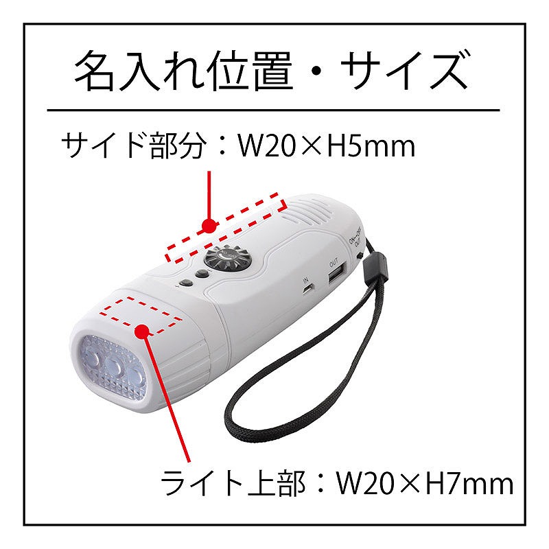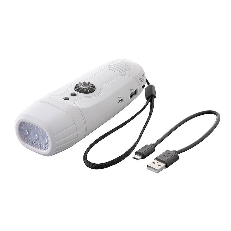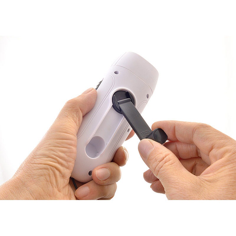 4機能付(1)LEDライト、(2)ワイドFM対応ラジオ、(3)スマホ充電、(4)サイレン機能付。※1充電目安(1分間の回転)ライト点灯時間:約10分間/ラジオ稼働時間:約10分間。※2電源:ニッケル水素電池3.7V、950mAh※3USB接続で、本体の満充電に約4時間かかります。満充電でスマホ(iPhone6)へは約30%充電可能。※スマートフォン、携帯電話のケーブルは付属していません。※一部非対応機種あり。