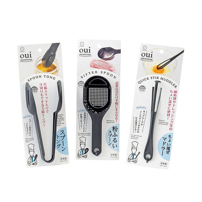セット内容:(1)ちょい混ぜマドラー、(2)スプーントング、(3)粉ふるいスプーン