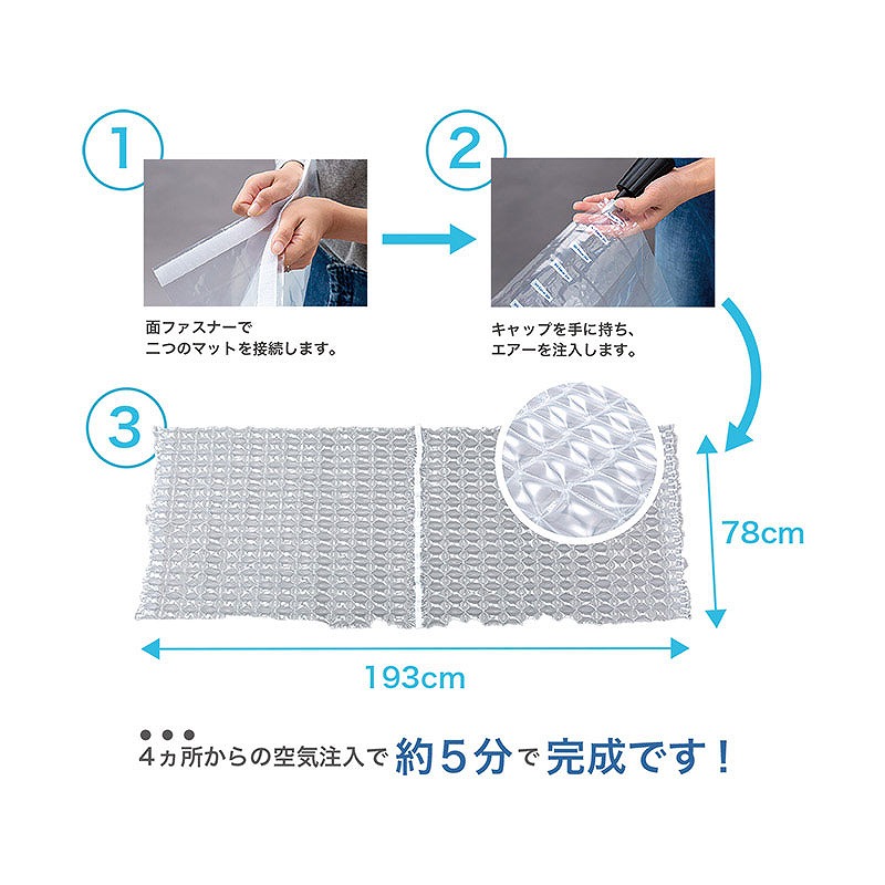 マット単品使用時約780×1000×厚み30mm×2枚、ポンプ:約φ50×297mm