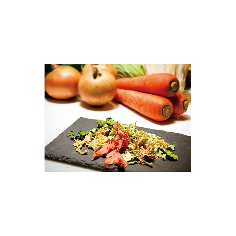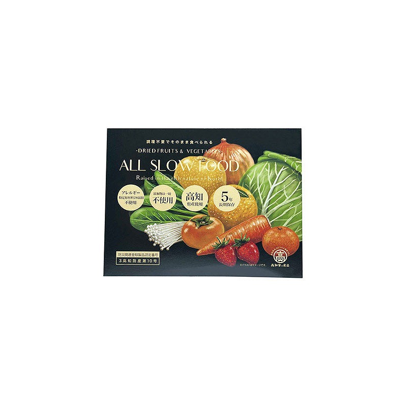 1食分(乾燥野菜6g)×10袋入。 水で戻さずに食べることもできるので、災害時に不足しがちな野菜も衛生的に手軽に補うことができます。 原料の野菜(キャベツ、玉ねぎ、人参、えのき、小松菜)は100%高知産。砂糖や保存料を使用せず低温でゆっくり乾燥することで、素材本来の味や栄養が凝縮されています。