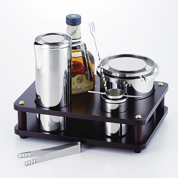 アイスペール:約135×135×120mm(580g・1300?) ウォーターポット:約137×80×202mm(380g・900?) スタンド:約57×57×87mm(70g・200?) メジャーカップ:約120×42×24mm(30g・30?) 木台:約296×226×82mm(860g)