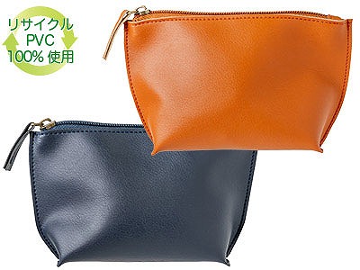 再生素材を使用した環境にやさしいポーチ。 コンパクトなサイズながら底マチが広いので収納力も充分あります。