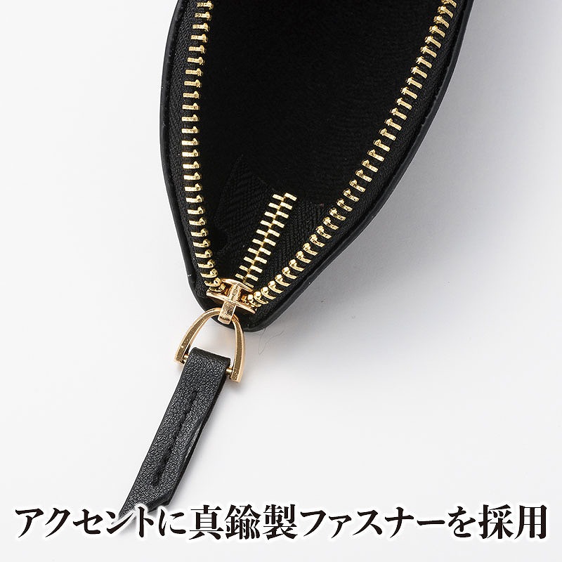 色はシックなブラック、真鍮製のファスナーは上品なピンクゴールドです。