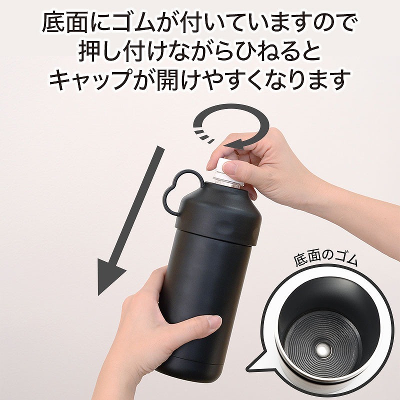 ペットボトルを押し付けながらひねると、キャップもあけやすい!