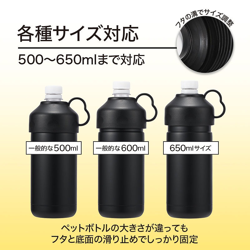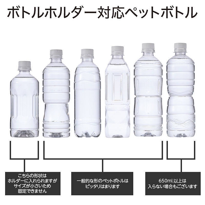 500〜650mlの、各種サイズのペットボトルに対応しています。(※)