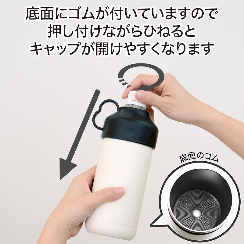 ペットボトルを押し付けながらひねると、キャップもあけやすい!