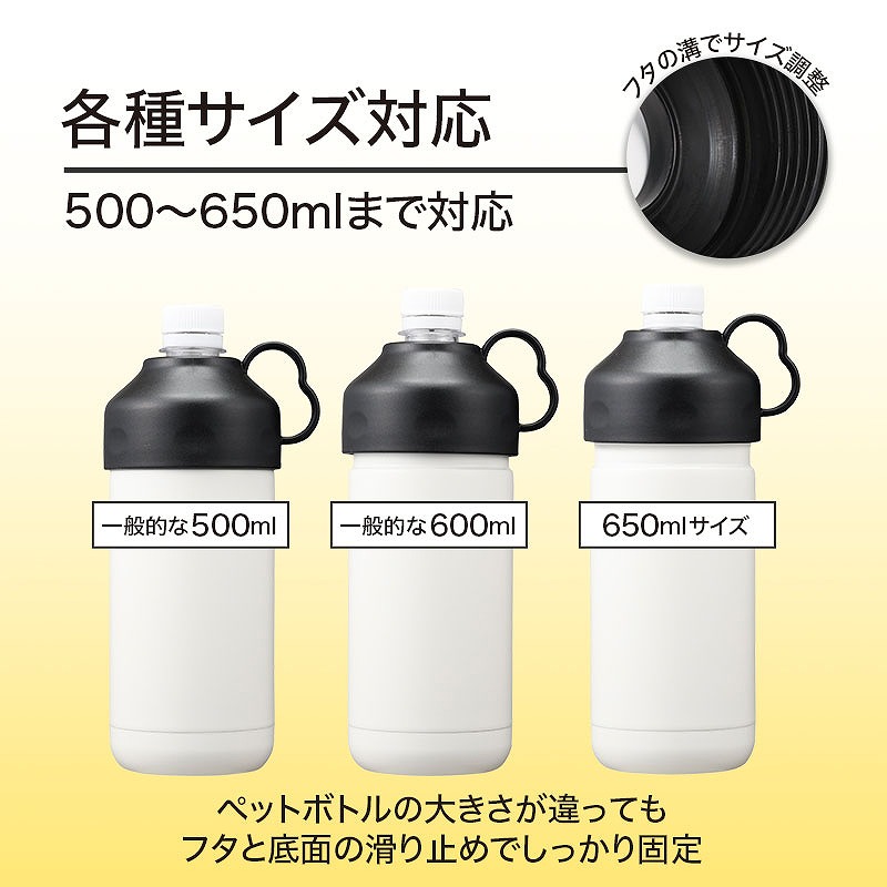 500〜650mlの、各種サイズのペットボトルに対応しています。(※)