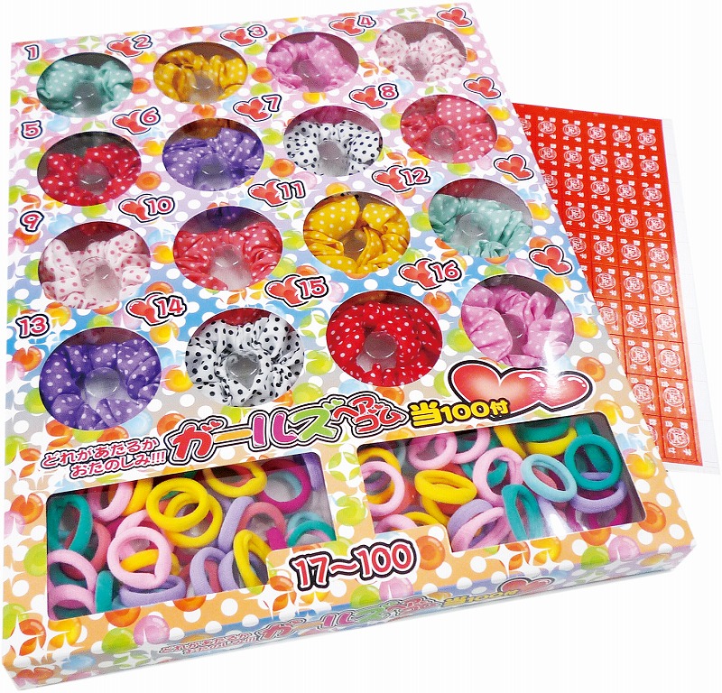 うさみみ付シュシュ・・・16個/カラーヘアゴム・・・84個/クジ紙・・・1シート