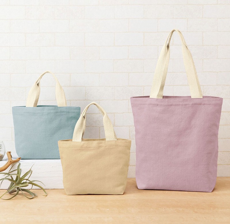 ミニトートバッグをまとめたカテゴリ。100〜250円の価格帯が一番ラインナップが多く、名入れを行ってノベルティとしてお使いいただくことが想定されます。