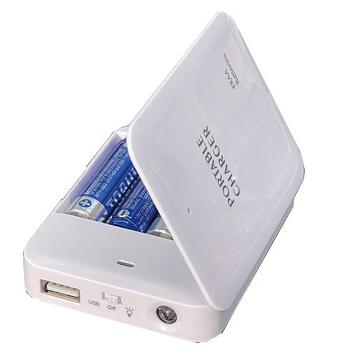 入力 5-6V 出力最大5V±0.2V スマートフォンへの充電機能・LEDライト機能の1台2役。停電時にも活躍する乾電池式。 単3電池4本使用(別売)