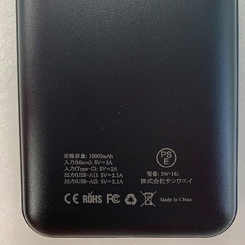 ・入力端子:入力(Micro ):5V=2A、入力(Type-C):5V=2A