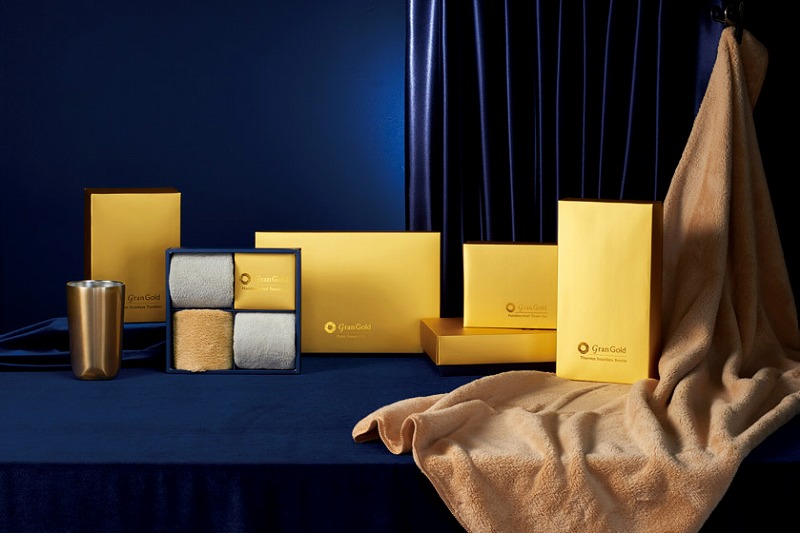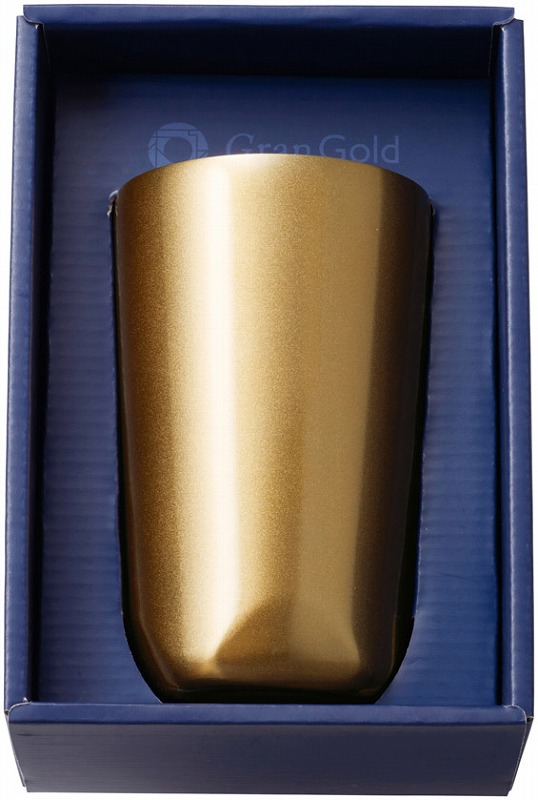 煌めくゴールド箱入りのギフト商品。 積み上げるだけで注目度高まるディスプレイに。 特別感ある塗装が魅力的な真空断熱タンブラー。